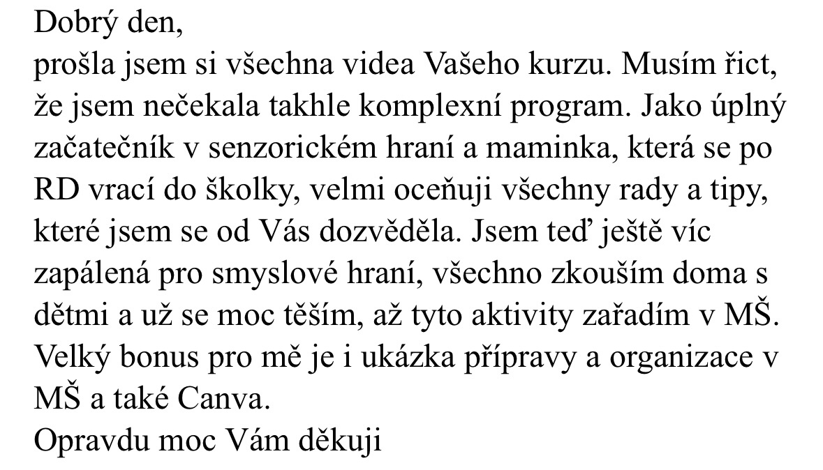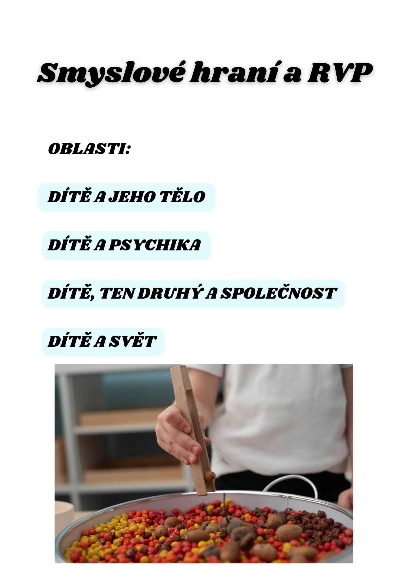 To se tobě stát nemusí. Začni se smyslovým hraním v mateřské škole i ty. Budeš umět nad aktivitami přemýšlet a dokážeš je připravit tak, aby vyhovovaly potřebám dětí v dané skupině.